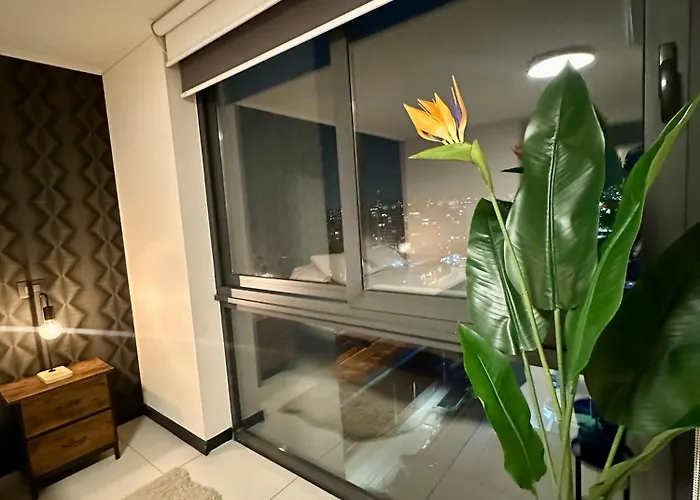 El Apartamento Sky Egaña Santiago de Chile está situado a unos 25 minutos a pie de la Plaza Ñuñoa, y a tan solo 450 m del Mall Plaza Egaña. Además, cuenta con una piscina privada para garantizar una estancia placentera.